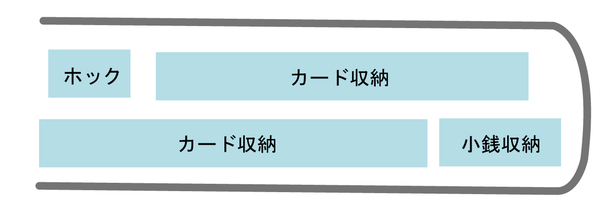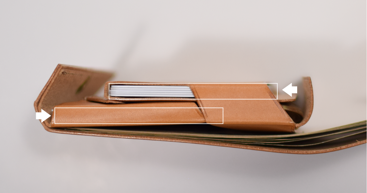 2階建て構造と浅い小銭入れ、折らずにはいるお札収納部がポイント。